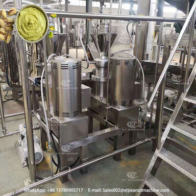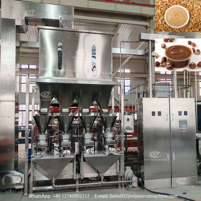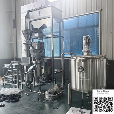 고급 분쇄 기술을 사용하여 견과류 버터, 토마토 소스, 커피 원두를 생산하는 대용량 산업용 분쇄기.