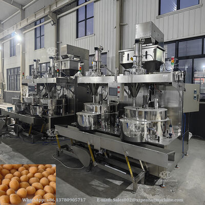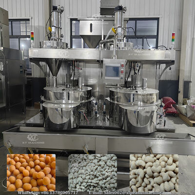 첨단 PLC 제어 시스템으로 고성능 반죽 코팅 견과류 간식을 만드는 기계 산업 식품 생산.