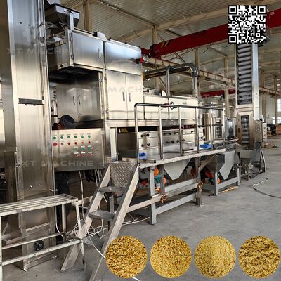이 고급 절단 시스템은 2단계 공정을 특징으로 합니다. 껍질을 벗긴 땅콩이 수직 컨베이어를 통해 절단기에 공급되면, 재료는 먼저 초기 절단 장치에 의해 거친 입자로 잘린 다음, 두 번째 단계 절단으로 흘러 혼합 과립이 됩니다. 통합 진동 체를 통해 절단된 재료는 4가지 균일한 사양으로 분류됩니다. 일반적으로 절단 크기는 5-8 메쉬, 8-10 메쉬, 10-12 메쉬로 나뉘며, 12 메쉬 미만의 재료는 분말 질감을 얻습니다.